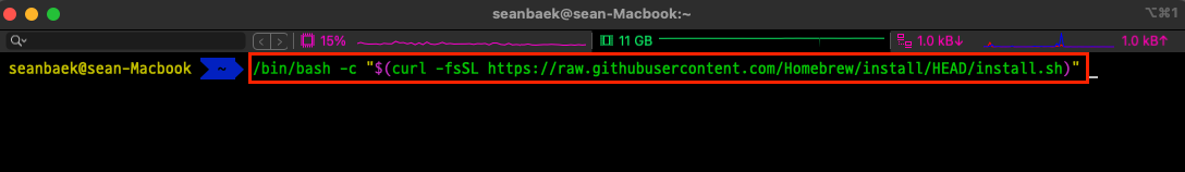아래의 사진과 같이 homebrew를 설치해줍니다.