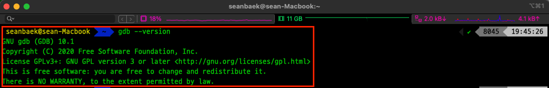 만약 자신의 MacOS에 GDB를 설치한 적 있다면 아래의 사진과 같이 gdb --version을 입력하여 설치 여부를 확인해 줍니다.