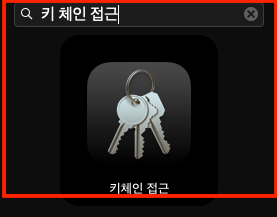 MacOS 내의 Launchpad에서 '키 체인 접근'을 검색한 뒤 키 체인 접근 아이콘을 클릭하여 프로그램을 열어줍니다.