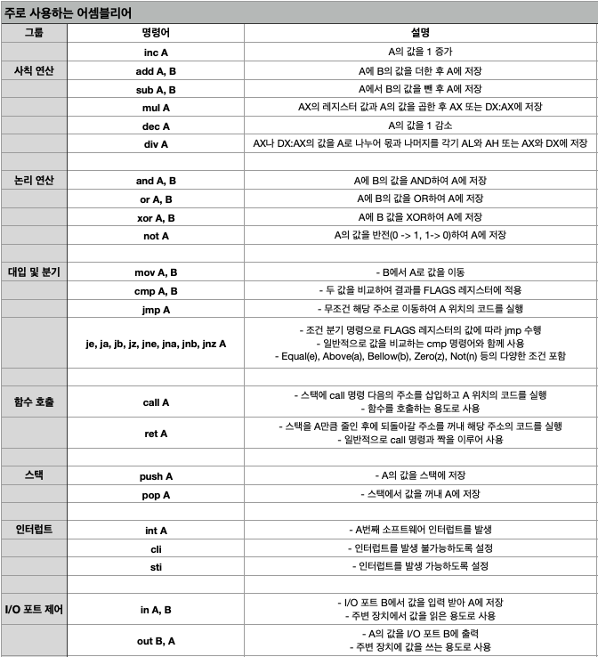 Intel 문법은 mov bx, ax 처럼 [명령어] [대상] [원본] 순서입니다.