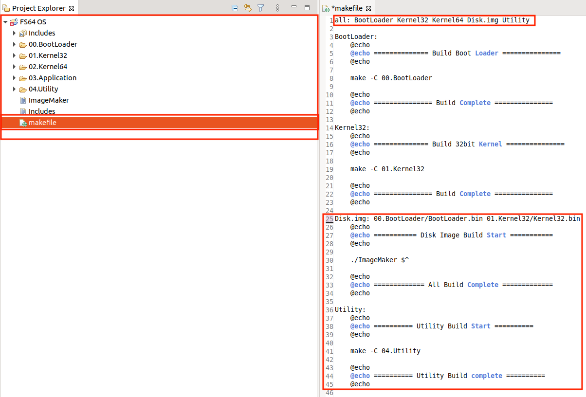 (아래의 사진에서 "all: " 부분 중 Disk.img와 Utility의 순서를 사진과는 달리 바꿔 적어준다.)