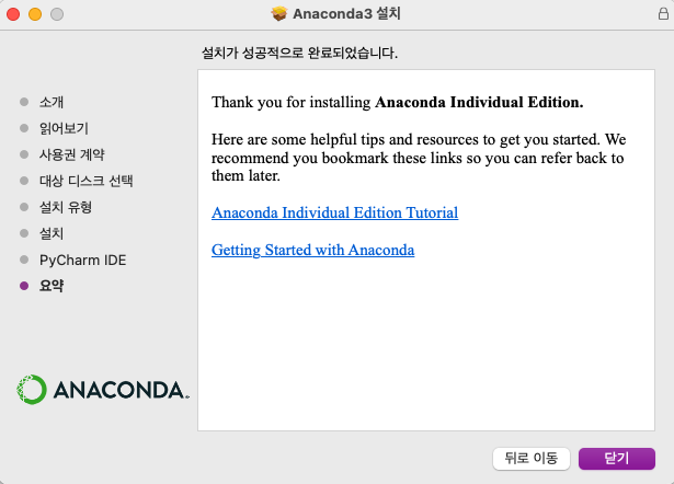 만약 설치에 실패했다고 뜬다면 Anaconda가 이미 설치되어 있을 수 있기 때문에