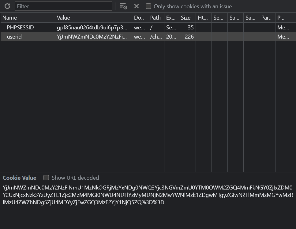userid 쿠키에 설정된 값을 보면 마지막에 %3D가 있다