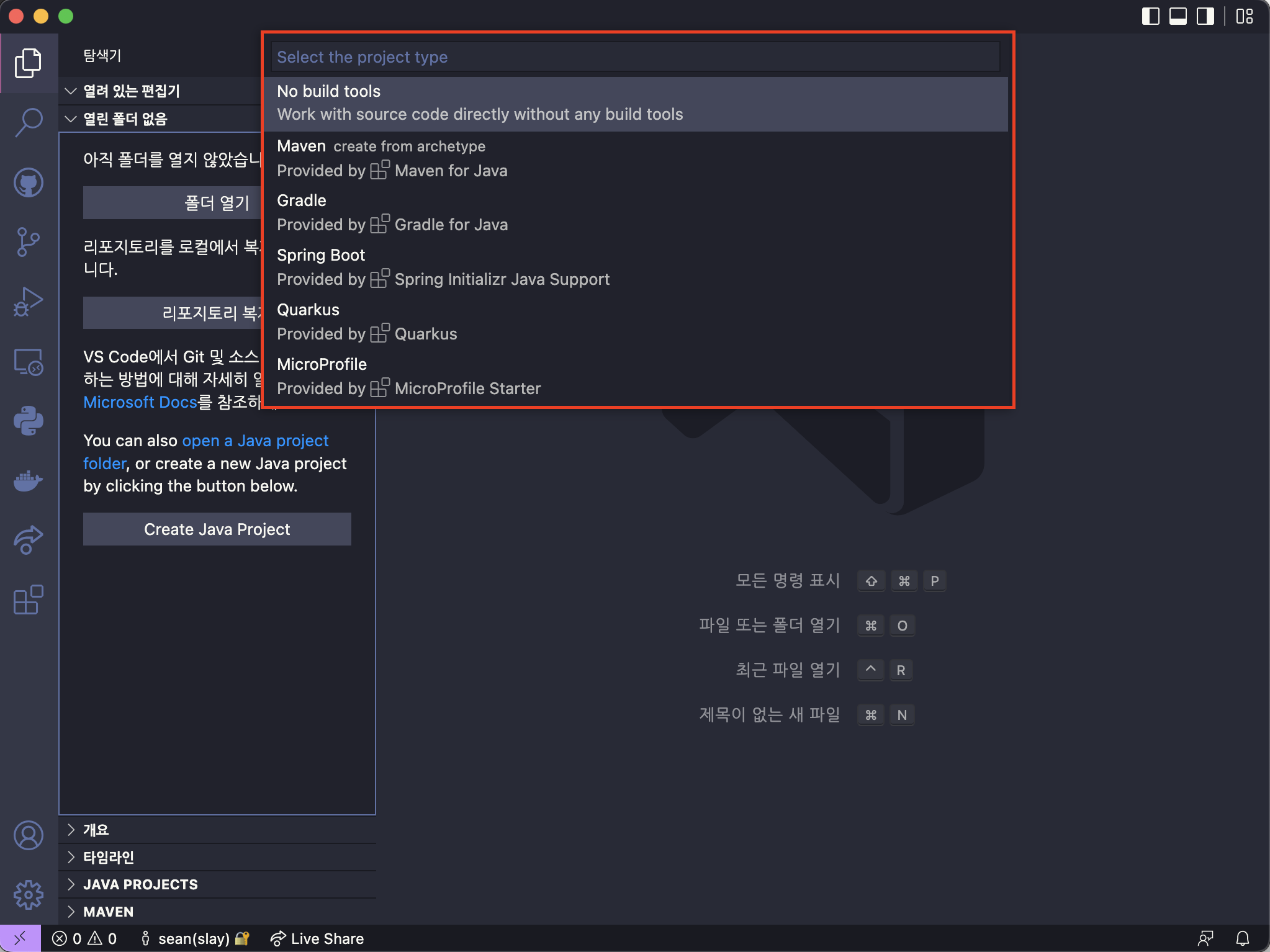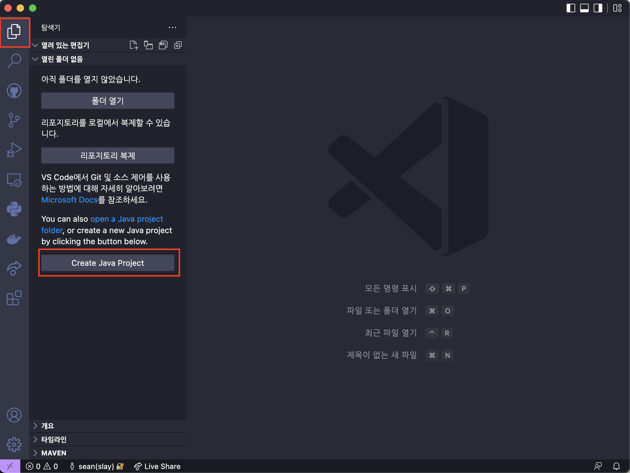 설치가 완료되면 위의 사진과 같이 Create Java Project가 생긴다.