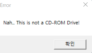 이어서 밑에 “Error”와 “Nah… This is not a CD-ROM Drive” 문구도 보인다.