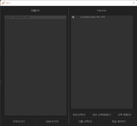 그리고 Ctrl+p 키를 눌러 패치한 파일을 저장한다.