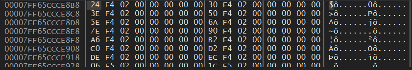 7FF65CCA0000(ImageBase) + 2F424(RVA) = 7FF6 5CCC F424(VA)