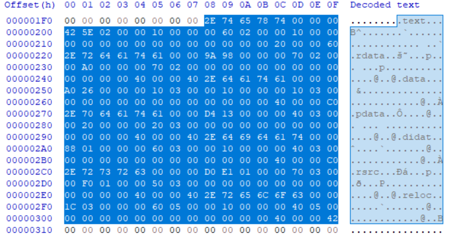 위의 사진에서 드래그 된 부분이 IMAGE_OPTIONAL_HEADER의 DataDirectory 부분이다.