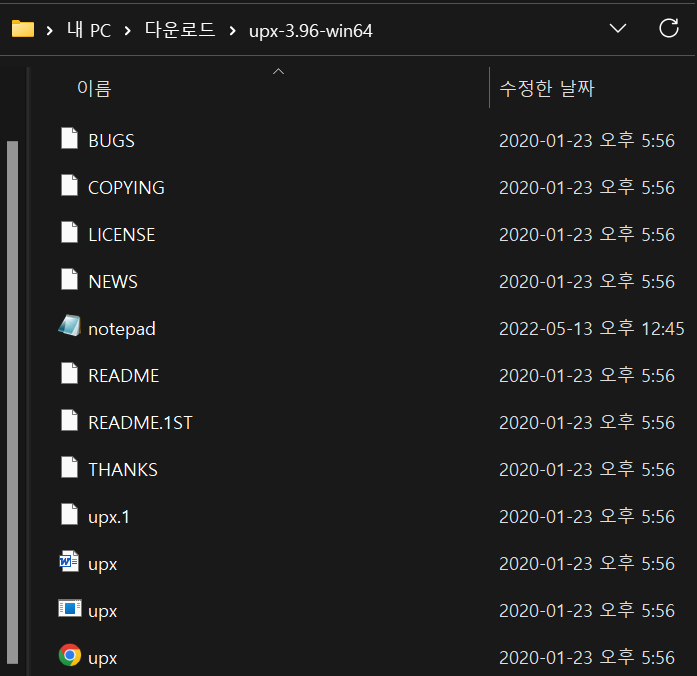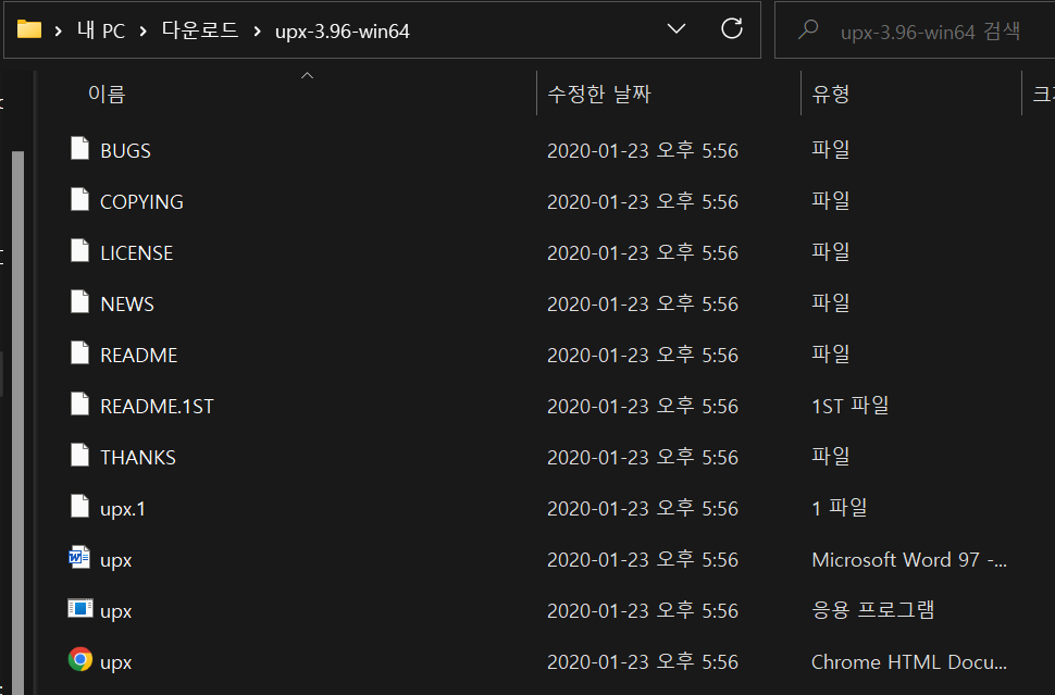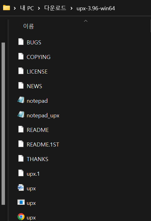 다운로드한 UPX 디렉토리로 이동하면 위의 사진과 같이 파일들이 있고