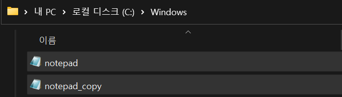 1. C:\Windows\System32 폴더 내에서 notepad.exe를 복붙하여 notepad_copy.exe 생성