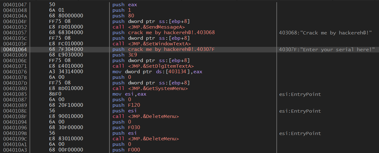 Crack me by hackereh@!의 EP 코드이다.