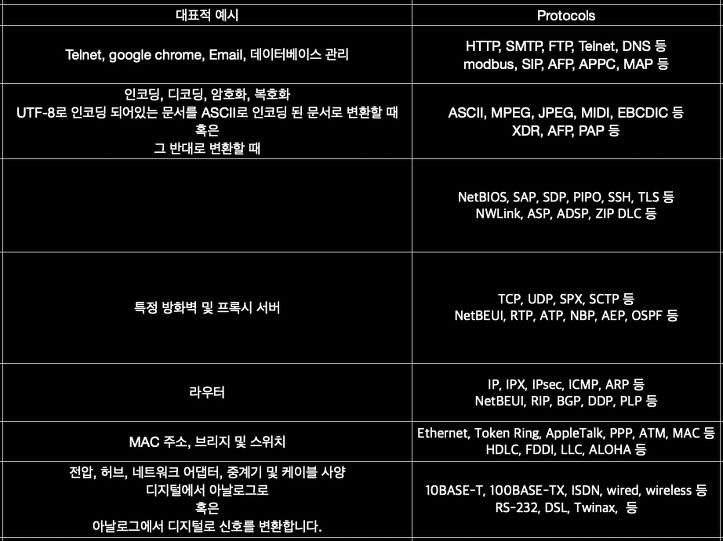 각 계층들에 있는 대표 프로토콜들이 뭐 뭐 있는지 확인해봅시다!