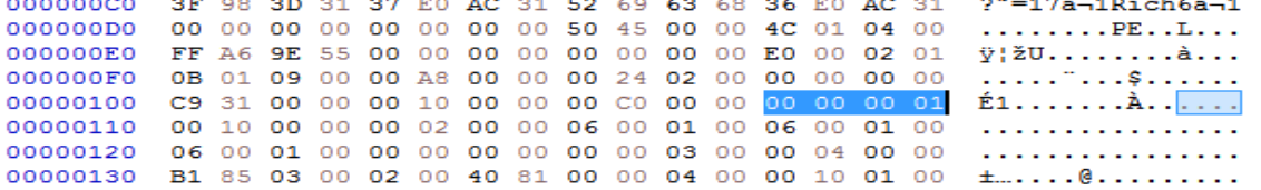 HxD에서의 EP 사진에서는 하드코딩된 주소가 ImageBase(1000000) 기준으로 되어 있다.