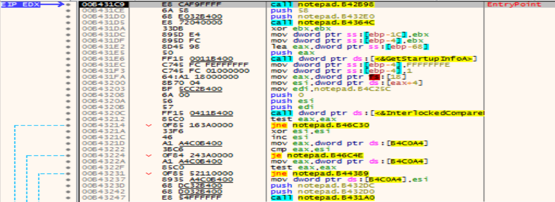 Windows 7 64bit에서 32bit notpad.exe의 AddressOfEntryPoint를 보면 31C9이다.