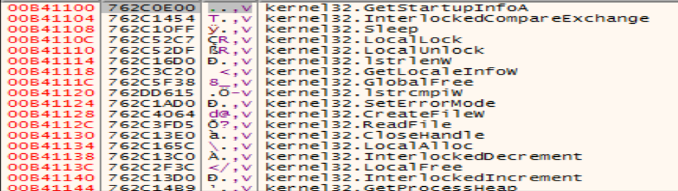 B41100, B41104 주소는 “.text” 섹션의 IAT 영역이고, B4C0A4 주소는 “.data” 섹션의 전역 변수이다.