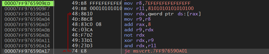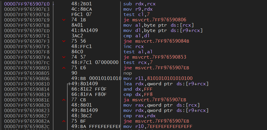 4015DC 주소의 strlen() 함수 call 명령 내부로 가면 위와 같이 나온다.
