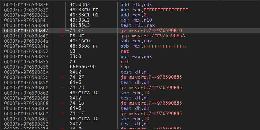 strcmp 함수 내부로 들어가면 위와 같은 코드가 나온다.