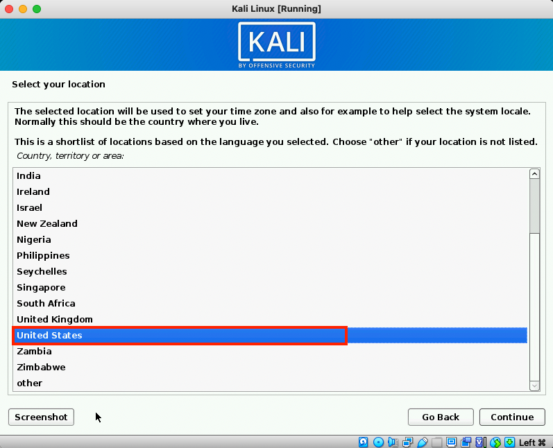 두 번째 사진과 같은 화면에서는 두 번째 항목에 있는 /dev/sda (ata-VBOX_HARDDISK_~~)를 선택한 뒤 진행합니다.