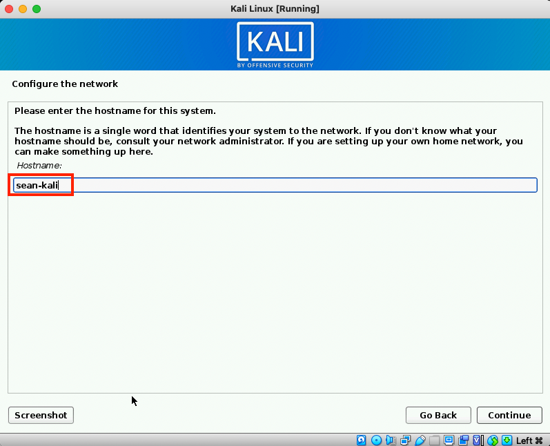 저는 저의 칼리 리눅스라는 것을 의미하기 위해 sean-kali라고 설정했습니다.