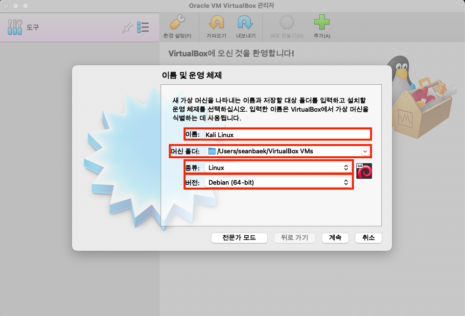 2. Vbox(virtualbox)에 칼리 리눅스 설치