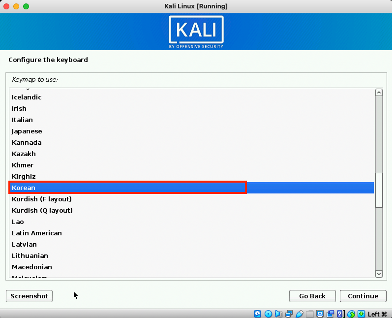목록 선택은 화살표 방향키로 가능하며, 자신의 호스트 운영 체제로 돌아가고 싶다면 Ctrl + Alt를 누르면 됩니다.