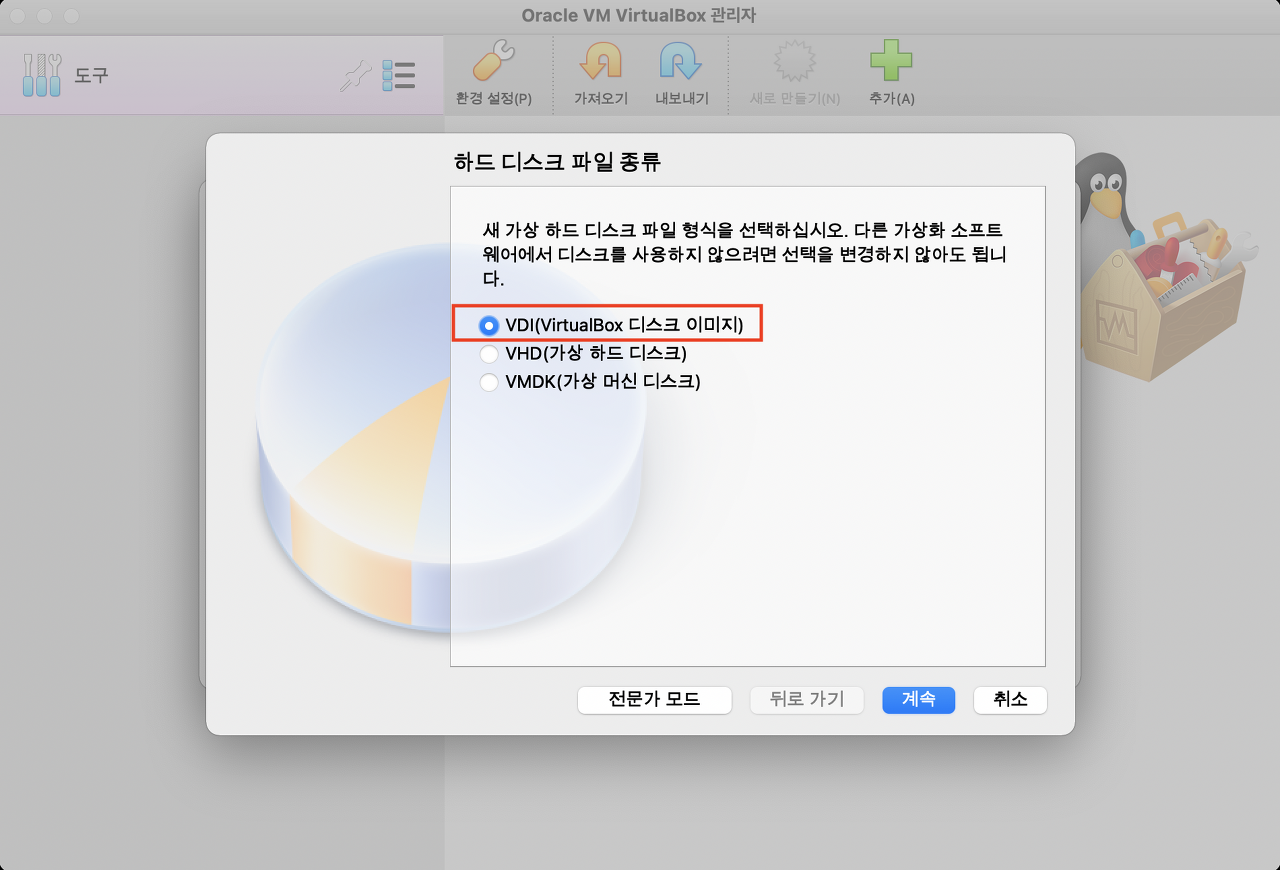 VDI (Virtual Dsik Image) : Oracle vbox(virtualbox)에서만 사용할 경우 사용하는 포맷.