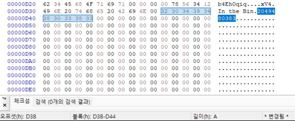 성공 메세지 부분의 주소 영역을 찾기 위해 HxD로 12.exe를 연 뒤 문자열 검색(Ctrl + F)에서 위와 같이 문자열을 검색한다.