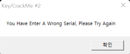 위에서 프로그램을 실행 했을 때 봤던 "You Have Enter A Wrong Serial, Please Try Agin" 문자열이 있다.