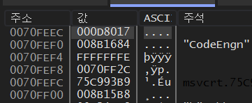 그리고 ebp-40에 있는 값인 70FFCC를 eax에 담고 eax와 ebp-3C의 값을 비교한다.