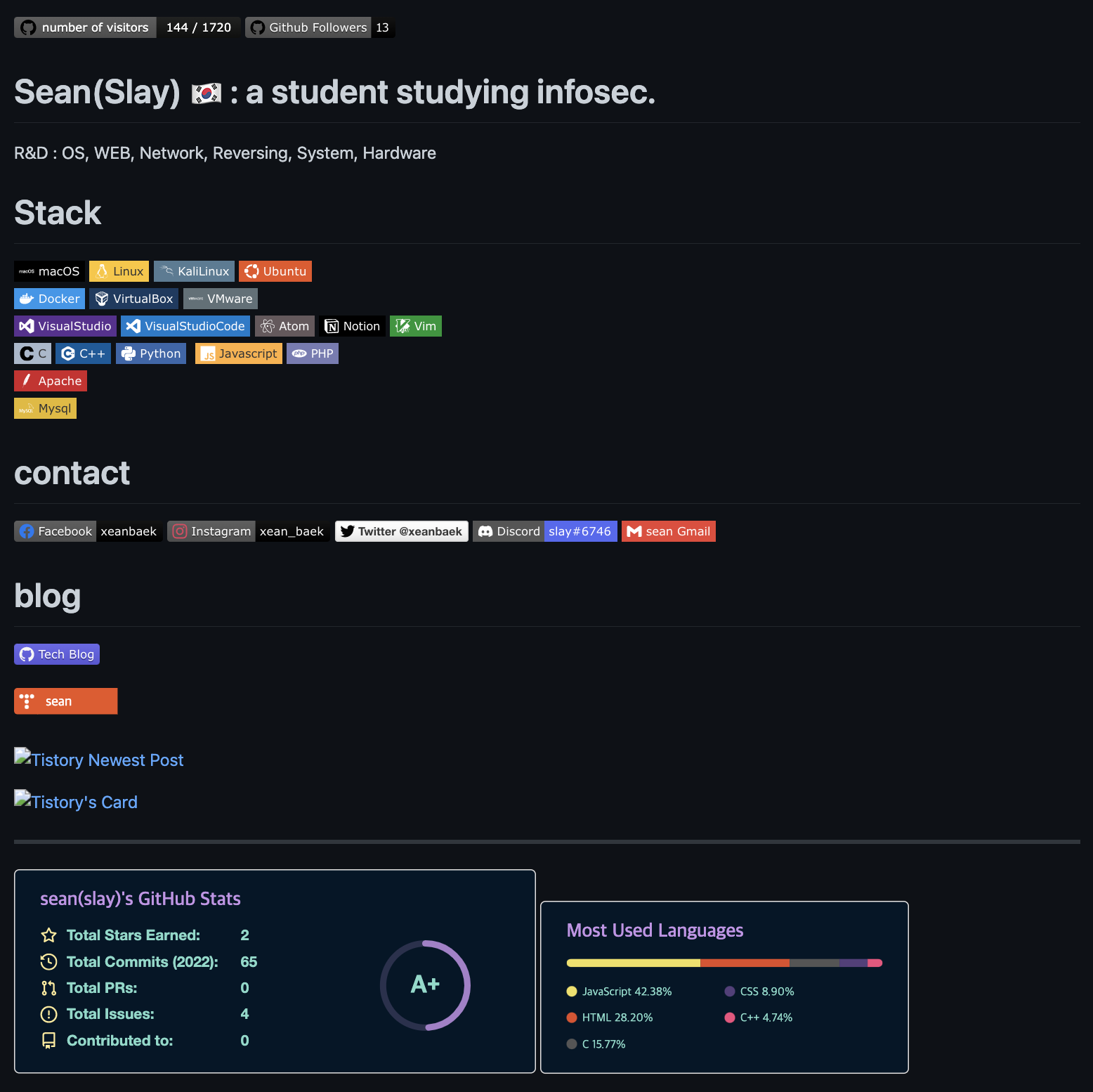 자신의 Github status 통계 Github repo - https://github.com/anuraghazra/github-readme-stats