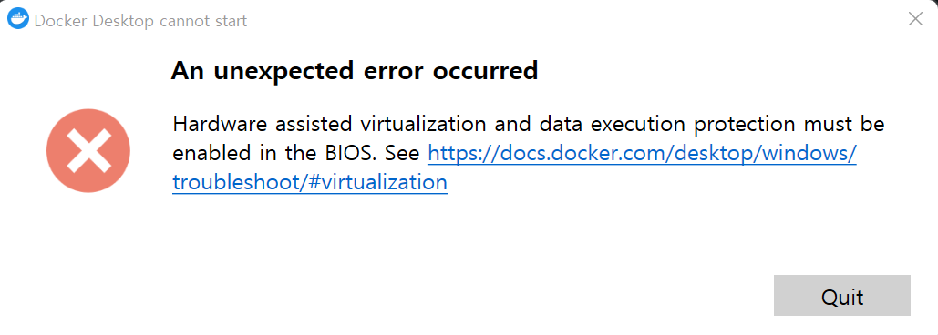"Docker failed to initalize", "Docker Desktop is shutting down" 오류 해결