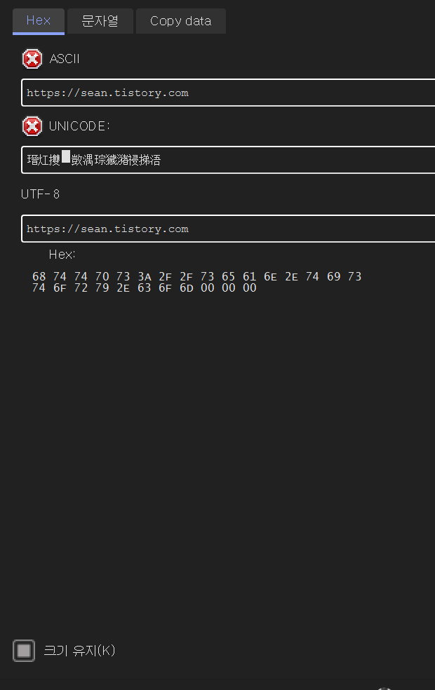 (참고. ASCII는 문자가 1byte이지만, UNICODE는 문자가 2byte이다.)