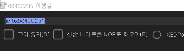 40C235 주소의 명령어를 jne에서 je로 바꿔주면 된다.