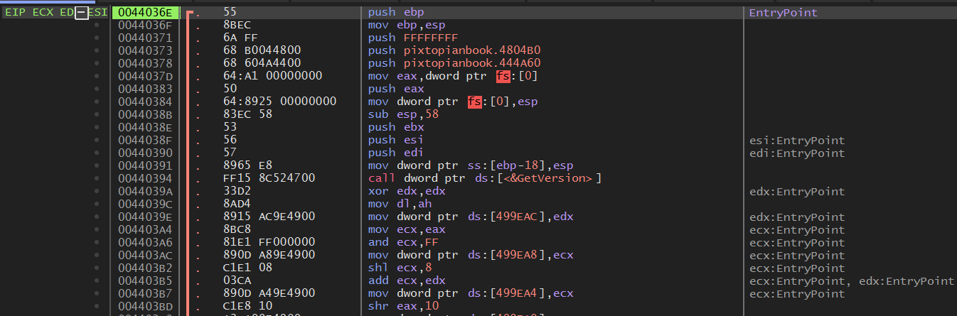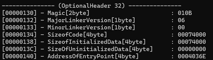 자체 제작한 PE Explorer로 보니 EP 주소가 4036E로 일치한다.