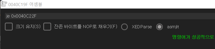 40C19F 주소의 명령어를 jne에서 je로 바꿔주거나