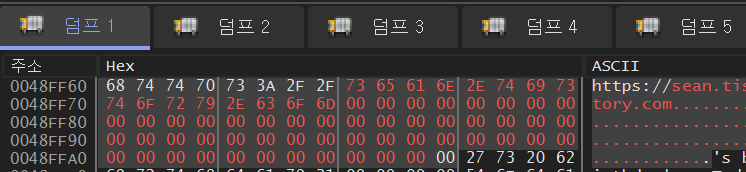 그럼 위와 같이 해당 문자열이 있는 주소가 뜨는데, 주소는 4E4BE8이다.