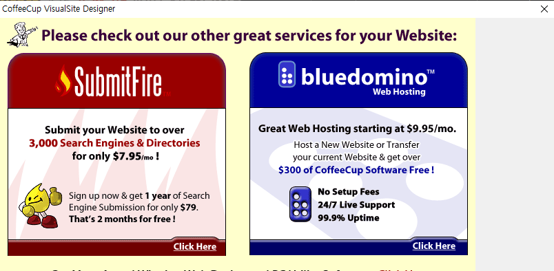 녹색 버튼 "Start Program"을 누르면 위와 같이 웹 브라우저에서 coffeecup.com 사이트로 이동한다.