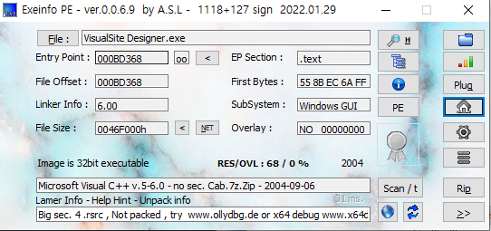 VisualSite Designer 파일의 주소 영역은 400000번대인데, 여기는 60000000번대이다.