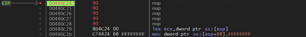 480C24 주소에 BP를 걸고, 재실행 후 다시 이 위치로 와본다.