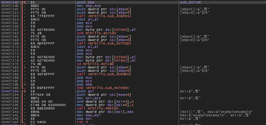 1. 40718E 주소에서 407069 주소로 점프한다.
