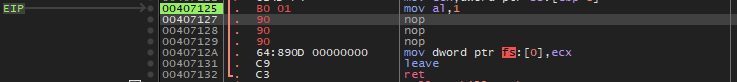 위의 분석 2 부분에서 함수의 동작을 분석했을 때 3번째 명령어에서 eax 레지스터의 값을 최종적으로 변경했다.