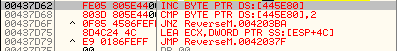 그러면 위와 같이 437D62 주소에 명령어가 쓰인다.