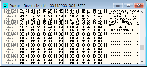 스크롤을 쭉 내려서 .data 영역의 끝으로 이동해보면 445E70 주소에서부터 NULL 값으로 되어 있다.