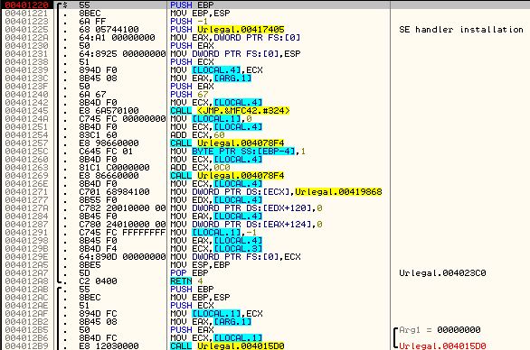 ID가 103인 대화 상자를 보면 위와 같은데 이전에 URLegal.exe 프로그램을 실행 후 종료 시 봤던 문자열들이 있다.