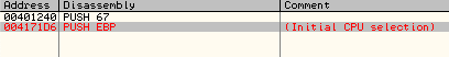 401240 주소에서 67h를 스택에 밀어넣고 있다.