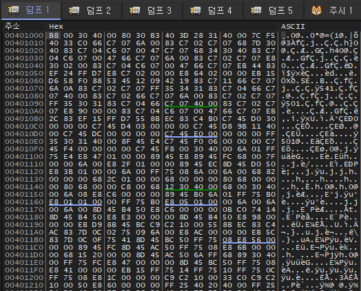 Ctrl + G 키를 눌러 401016을 입력하여 401016 주소로 이동하면 위와 같이 있는데