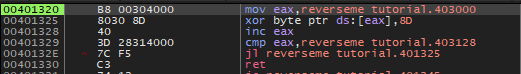 401000 주소 ~ 40100E 주소까지가 403000 주소부터 403128 주소까지의 영역을 대상으로 xor 연산하여 복호화 하는 하는 루프인데