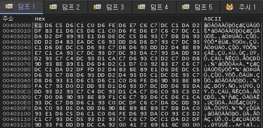 해당 주소는 .text 섹션의 시작 주소로, 이전에 복호화된 영역이다.