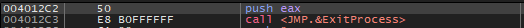 4012C2 주소의 함수는 위와 같은데 ExitProcess 함수를 호출하는 것 밖에 없다.