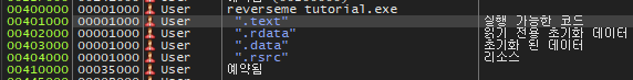 40130F 주소의 함수에서는 401000 주소를 eax에 저장하는데 401000 주소는 메모리 맵에서 봤을 때 위의 사진처럼 .text 섹션의 시작 주소이다.